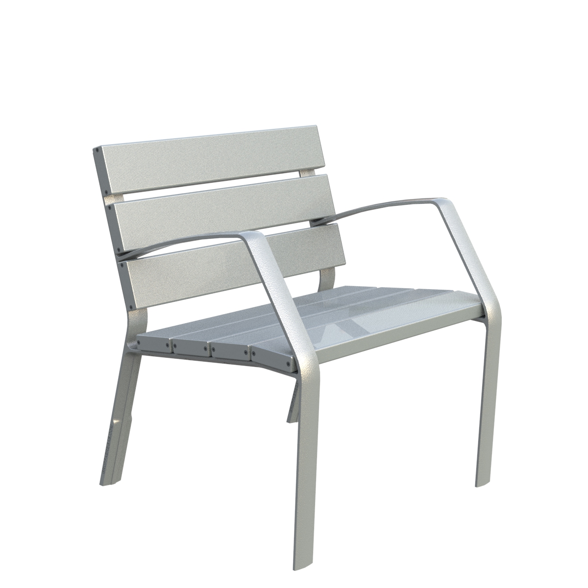 Stolica iz MODO10 serije sa 7 ekstrudiranih aluminijskih letvica završno obrađenih bočnim poklopcima s eloksiranom završnom obradom od 20 mikrona u mat srebrnoj boji i dvostrukim brtvljenjem, dimenzija 700x110x35 mm, mm, s nogama od lijevanog eloksiranog aluminija (AG3).