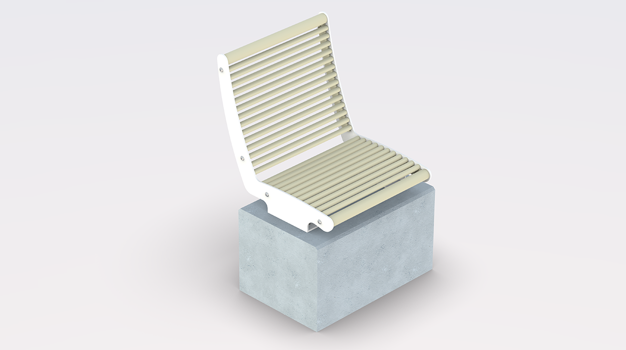 Kako bi se prilagodilo različitim estetskim potrebama, sjedalo je dostupno u osnovnoj završnoj obradi “svijetla bjelokost RAL 1015” za sjedalo i naslon te “čisto bijela RAL 9010” za nosače. Nadalje, na zahtjev je moguće zatražiti prilagođene boje i završne obrade kako bi se sjedalo savršeno integriralo u okolni prostor. Konstrukcija, izrađena od pocinčanog čelika i obojena termoreaktivnim prahovima, jamči visoku otpornost na atmosferske utjecaje i dugi vijek trajanja tijekom vremena.