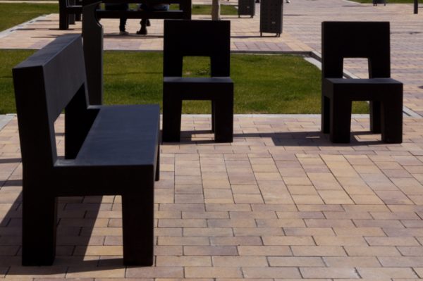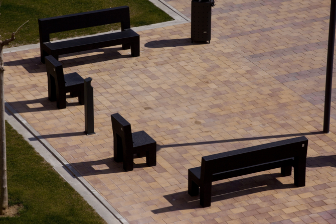 Stolice su izrađene iz jednog komada, robustan dizajn daje garnituri veliku otpornost na vandalizam, a održavanje je praktički nepostojeće.
