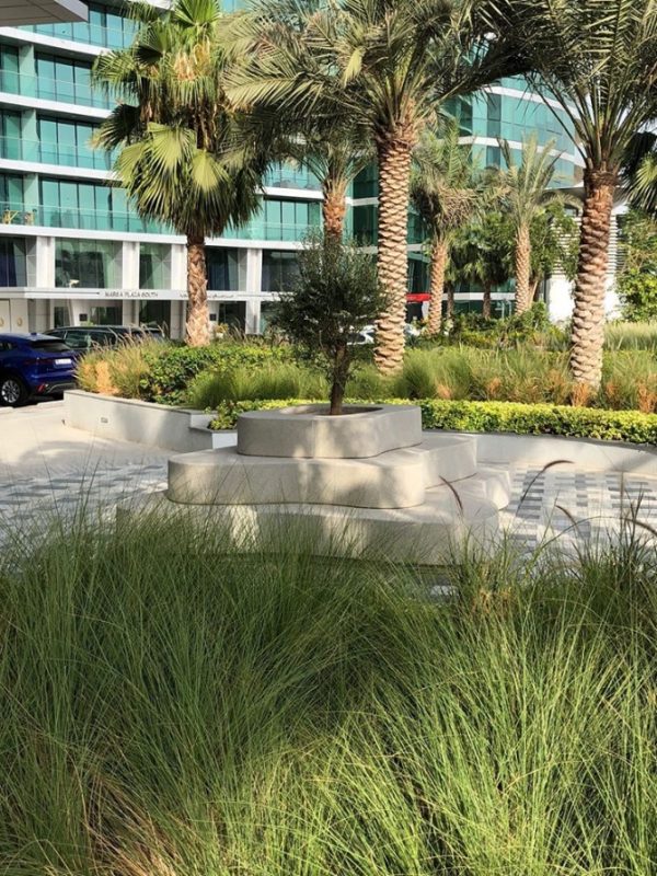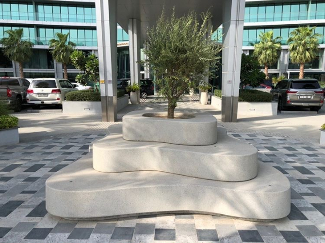 Vrtna klupa Crüsoe izrađena je od betona. Otok usred grada.