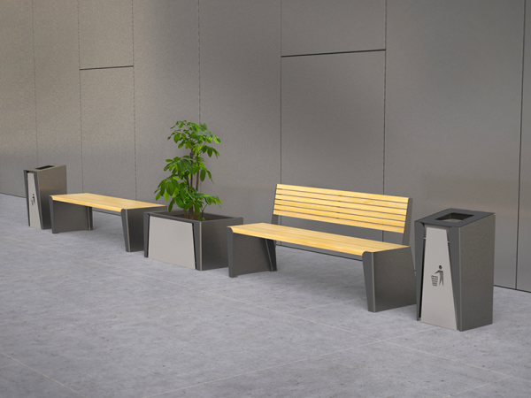 Žardinijera DO.21.03 čelična je konstrukcija obložena drvenim letvicama presjeka 40×40 mm, opremljena umetkom od nehrđajućeg čelika ili čelika H17 premazanog prahom.
